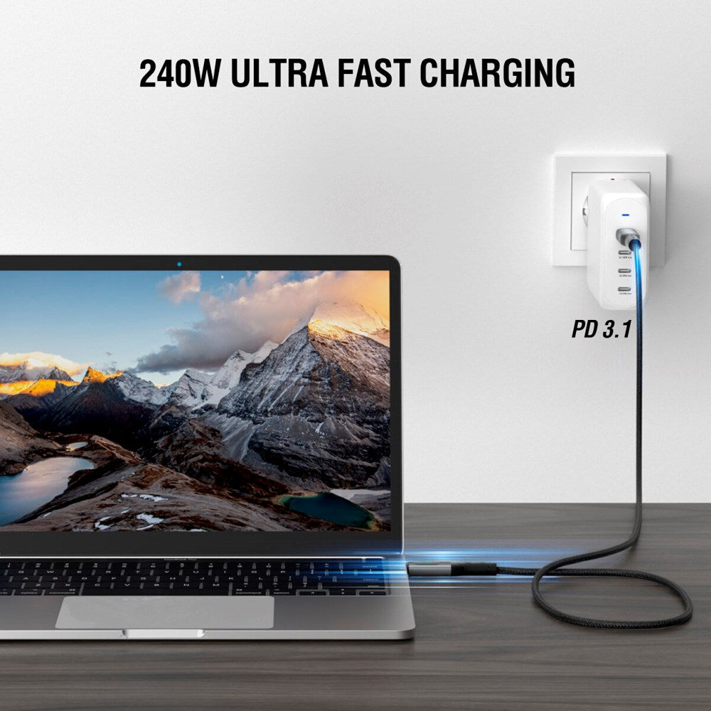 Med en imponerende opladeeffekt på 240W får dine enheder strøm på rekordtid – hvad enten det er en bærbar computer, tablet eller smartphone. Det gør DigitCord til det ideelle valg for dem, der ikke har tid til at vente. Den avancerede energioverførsel holder temperaturen stabil, så dine enheder er sikre og beskyttede under hele opladningen.