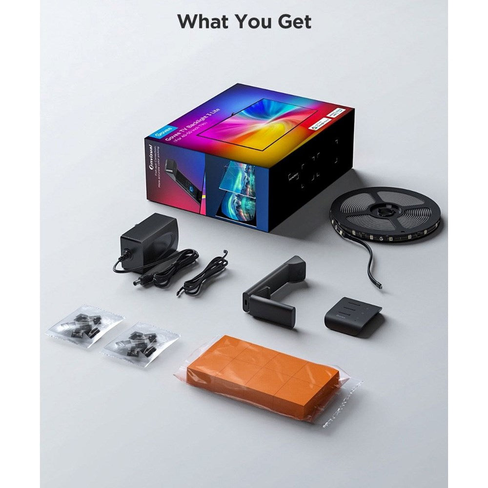 Govee TV Backlight 3 Lite er en smart baggrundsbelysning, der monteres på bagsiden af et TV for at skabe en imponerende farveeffekt bag skærmen. Den forbedrer den visuelle oplevelse ved at tilføje levende farver. Sættet indeholder en TV-baggrundsbelysning, der leveres med en kameraenhed med fiskeøje-korrektion, en RGBIC+W LED-lysstrimmel, og en gravitationsbaseret ophængningsdesign til kameraet, der gør installationen nem og sikrer stabilitet på ultratynde tv'er.