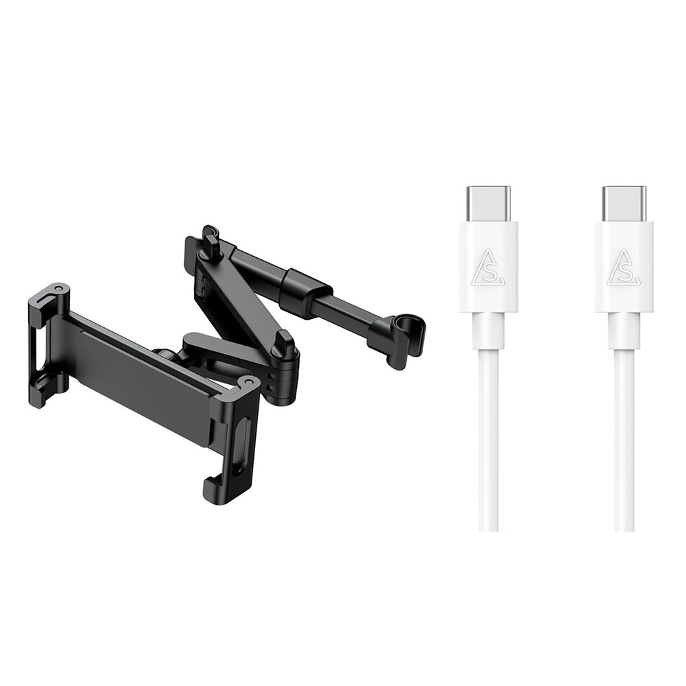 En god kør-selv-ferie pakke der indeholder både tabletholder til bil og USB-C til USB-C Ladekabel. Derved skaber du nemt en tablet ladestation i din bil, så de på bagsædet kan underholdes på hele turen.