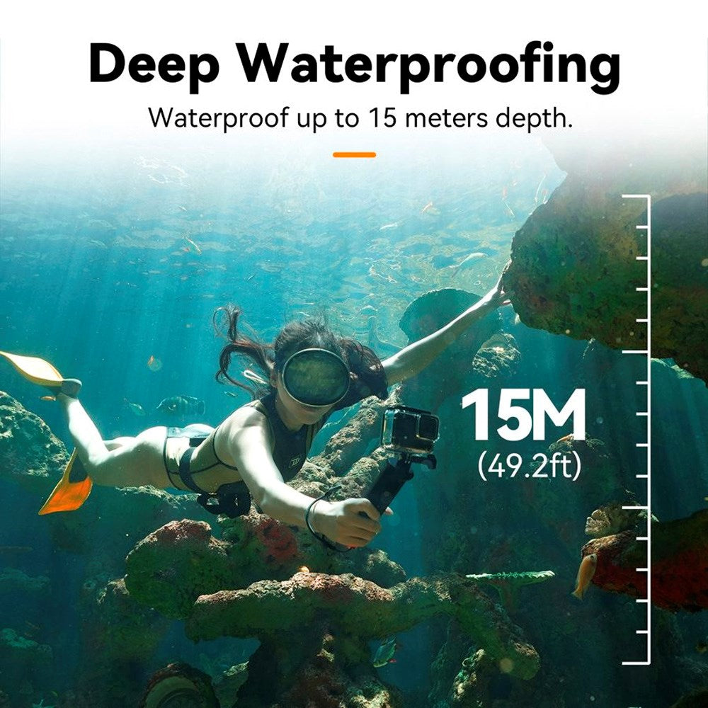 Det kompakte og lette design (kun 84g og 30cm langt) gør det nemt at pakke i tasken og tage med overalt. Uanset om du er på ferie, undervandseventyr eller bare vil optage i vandkanten, er dette håndgreb din perfekte makker.