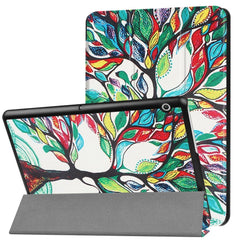 Huawei MediaPad T3 10 9.6" Cover - Tri-Fold Læder Cover "Tree Painting" Hvid / Grøn