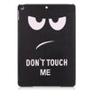 Cover til iPad 10.2" (2021 / 2020 / 2019) i flot kunstlæder med teksten "Don't Touch Me" under en sur smiley.