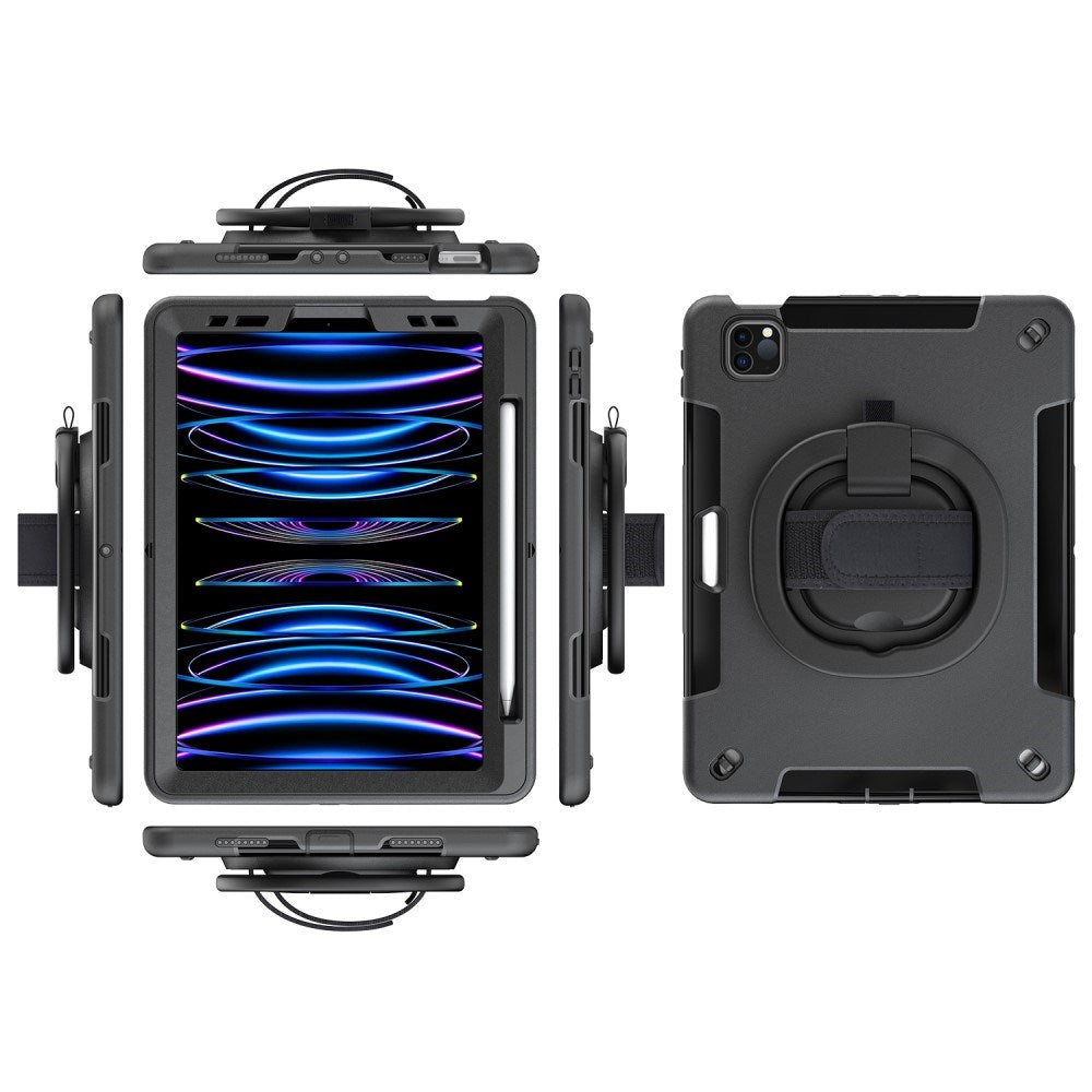 EIDERWOOD iPad Air 10.9-11" (2025-2020) / Pro 11" (2022-2018) Håndværker Cover med Beskyttelsesfilm, Apple Pencil Holder & Håndholder - Sort