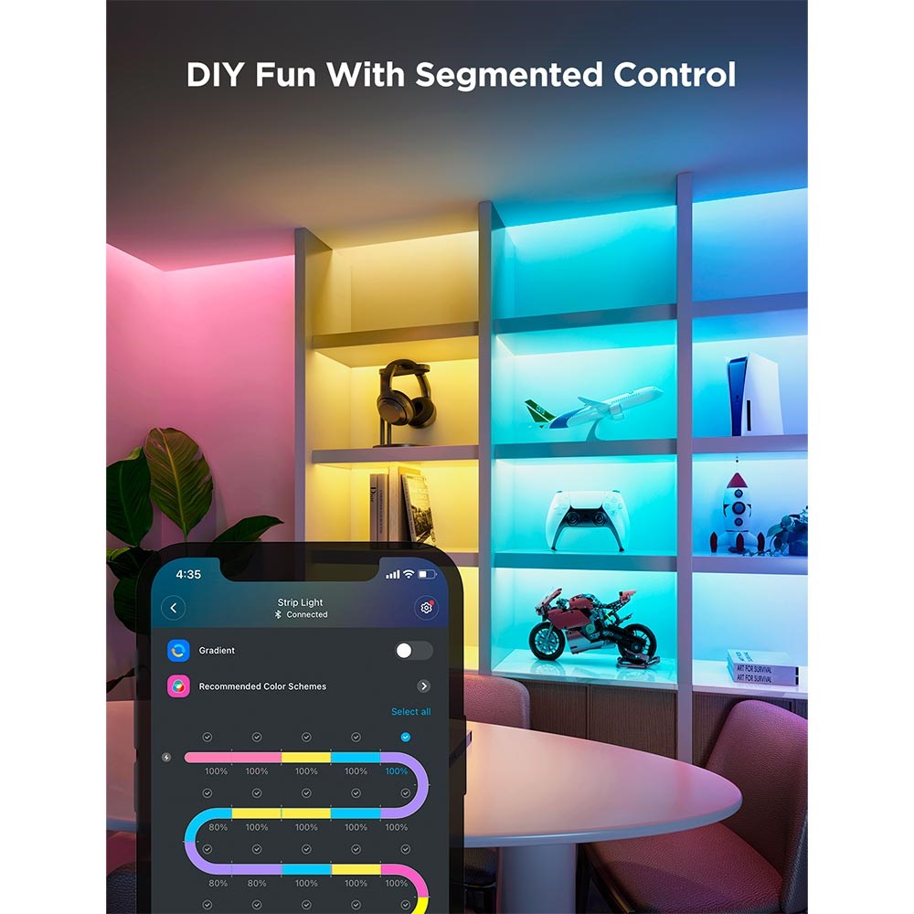 Forvandl dit hjem med Govee Strip Light 2 Pro, der tilbyder en fantastisk belysningsoplevelse. Med 5-in-1 RGBIC+ teknologi og smarte funktioner kan du skabe den perfekte stemning til enhver lejlighed. Fra at synkronisere lyset med musik og film til at justere lysstyrken med stemmen – Govee Strip Light 2 Pro leverer funktionalitet og stil i ét.