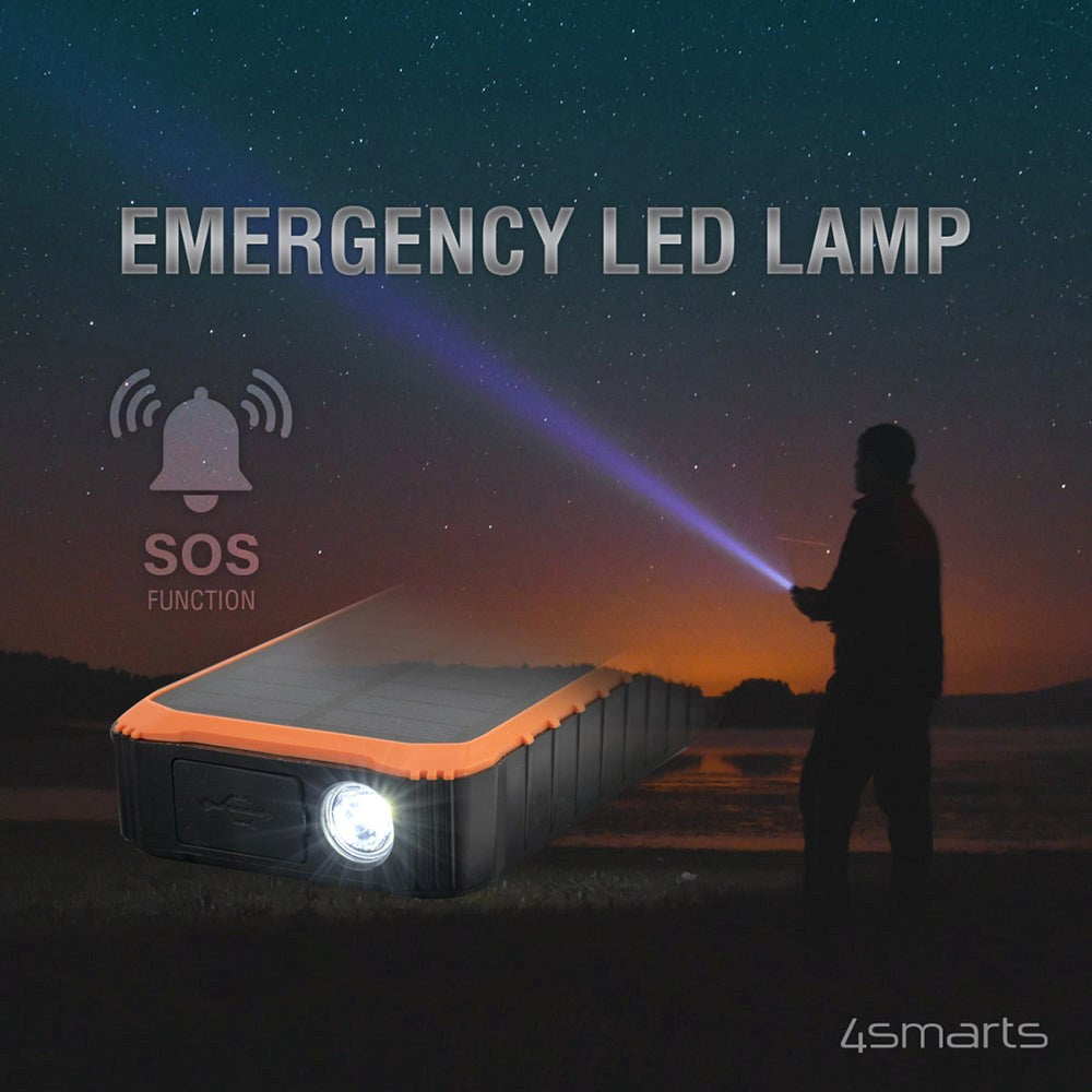 Denne 4smarts powerbank er robust og vandtæt, så den passer perfekt til dig som gerne vil have din smartphone eller andet elektronisk udstyr med i naturen. Derudover har denne powerbank en lommelygte og et solcellepanel til strømfri opladning af powerbanken.
