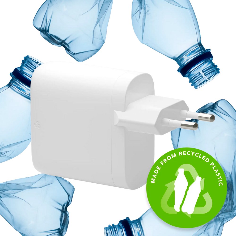 Vægopladeren er lavet af 100% GRS-certificeret genbrugsplast og er 100% genanvendelig. Den er fremstillet med GaN-teknologi, som betyder, at den er mindre og mere kraftig end de traditionelle vægopladere. Strømforsyningen bliver derved mere effektiv, som resulterer i mindre spildvarme og lavere energiforbrug - der er derfor ingen grund til ikke at vælge denne vægoplader fra dbramante1928, hvis du værner om miljøet og ønsker kvalitet og funktionalitet på højeste plan.